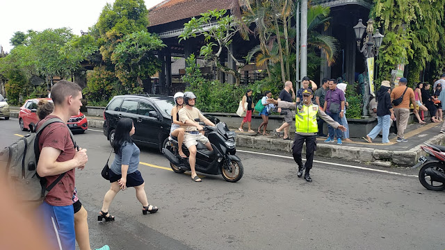 Untuk itu, personel Pos Pelayanan Catus Patha Ubud bertugas untuk menjaga ketertiban masyarakat pengguna jalan raya, dengan melaksanakan pengaturan dan pemantauan serta bantu penyebrangan di kawasan Wisata Ubud Palace.